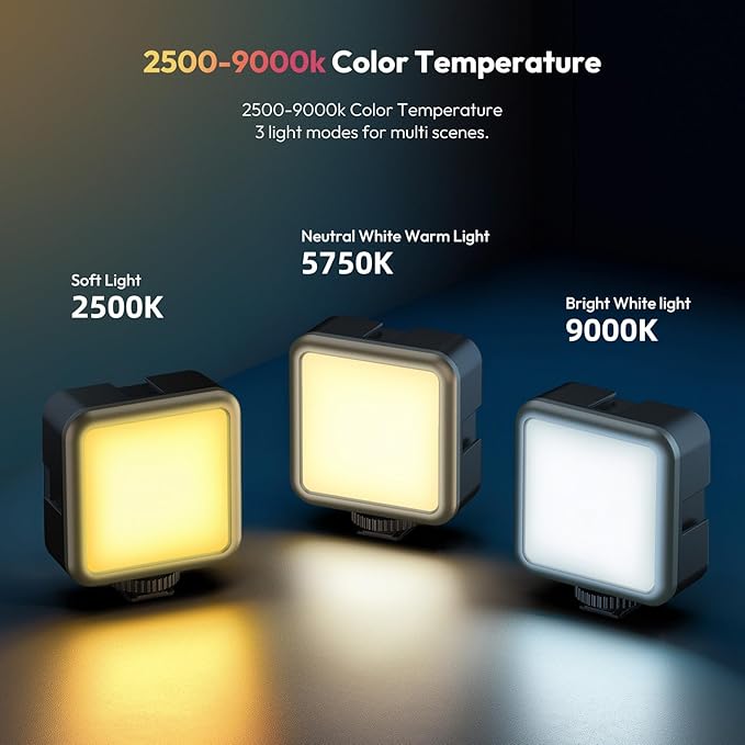 【小型&軽量】ライトサイズは約66mm*66mm*30mmの大きさです。片手で操作でき、コンパクトで持ち運びも簡単です。小さいながらも非常に明るいです。60個の高演色LEDを使用しています、照明角度は120 で、明るさは800LUX @ 0.5m、CRI95 +に達し、正確に信頼性のある色を表現します。
