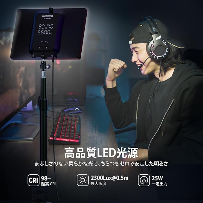 NEEWER GL25B LEDビデオライト 25W 高出力 撮影ライト 超輝度 調光可能 2900K-7000K 2300lux/0.5m CRI98+ 超演色性 パネルライト 補助照明 エッジ発光 2.4Gリモート/USB送信機/卓上スタンド付き ストリーミングライト ゲーム録画/生放送/ズームコール/ウェブカメラ照明/ビデオ会議/在宅勤務/スタジオ撮影用 | oioioichan