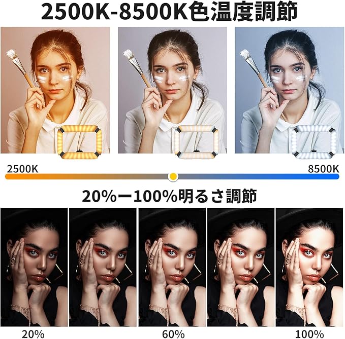 【CRI96+の高演色性、幅広く活躍】 ビデオリグライトの出力は20W、200個の高輝度LEDビーズを搭載しています。CRI 96+で、より自然な色を再現します。ライブ配信、写真撮影、屋外動画撮影、TikTok、Youtube、vlogなど、様々なシーンで幅広く活用されています。