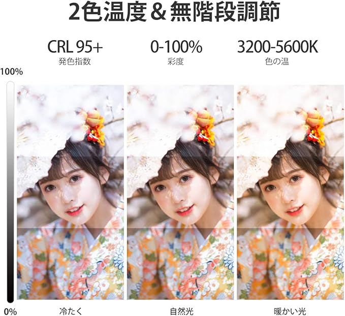 【暖かい光と白色光 調整可能】41の白い光ビーズ+ 40の暖かい光ビーズ,色温度3200K-5600K,アプリケーションシナリオの変化に応じて迅速に調整できます。内蔵リチウム電池Type-Cインターフェース充電