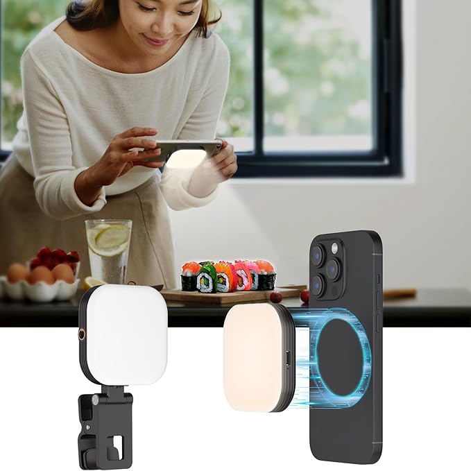 【料理が美しく映える!プロのような写真を】 料理撮影用ライトとして最適!自然な光で美味しさをそのまま表現。3色温度調整&5段階調光で、理想の光を自在にコントロール!料理の質感・彩りをリアルに再現。 物撮りや料理写真に最適なスマホライトとして、レストラン、キッチン、自宅のテーブルどこでも簡単に使用可能です。