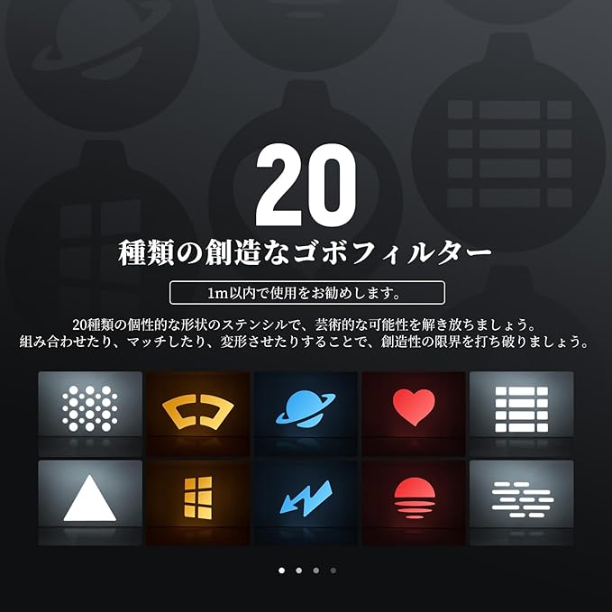 【4色のライト&20種類のゴボフィルター】撮影用スポットライトには、温白色、オレンジイエロー、アイスブルー、そして魅力的な赤色の4色のLEDが搭載されています。20種類のゴボフィルターが付属し、様々な効果が得られます。 10W出力で、最大1620Lx/0.5m(2000K)の黄色光と、CRI95+、TLCI96+の高い温白色光を実現し、正確な色再現を.します。1%-100%の調光可能で、ポートレート撮影、スタジオ撮影、商品撮影、ビデオポッドキャスト、写真撮影、結婚式撮影、Vlog、生放送などに最適な背景照明やソフトキー照明キットです。
