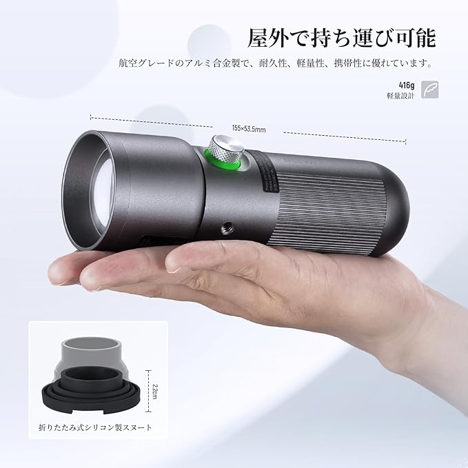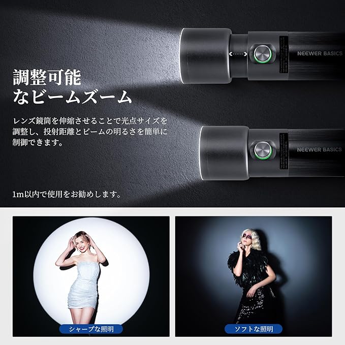 【NEEWER BASICSシリーズ】NEEWER BASICSシリーズは、シンプルで実用性に優れたシリーズで、基本的な機能とデザインに基づいて、不要な追加機能や素材がありません。NEEWER FL10は、ポータブルで雰囲気作りに最適な撮影用フラッシュライトで、サイズは155x53.5mm、重さはわずか416gで、アルミ合金で作られ、頑丈かつ軽量な設計を採用します。コンパクトなサイズと質感のあるハンドルは、片手で快適に握ることができ、手持ちでの使用に最適です。