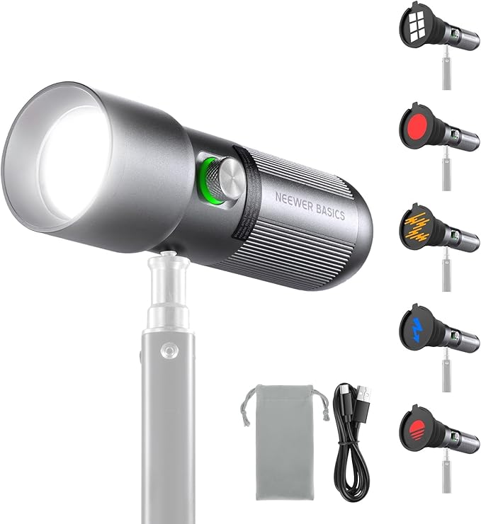 NEEWER BASICS RGB 撮影ライト ビデオライト 写真用懐中電灯 4色/20ゴボフィルター/7500mAh 充電式フラッシュライト 10W LEDスポットライト 小型 軽量 アルミ合金製パターン雰囲気作りハンドヘルド補光灯 自撮り/物撮り/ポートレート/ビデオ録画/スタジオ/動画照明用 FL10 | oioioichan