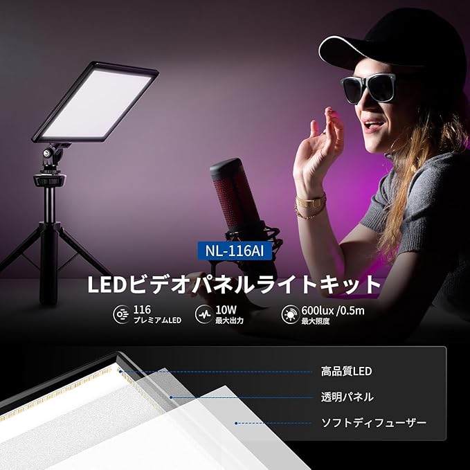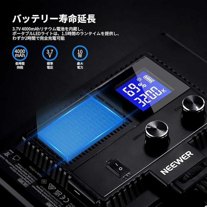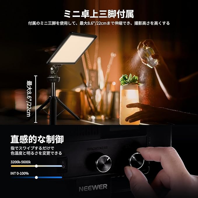 NEEWER NL-116AI 9インチ LEDビデオライト パネルライト ミニ三脚付き 調光可能 4000mAh. USBタイプCポート 3200K~5600K CRI95+ 600Lux カメラライト 撮影照明用ライト 自撮りライト 女優ライト 写真撮影/ビデオ録画/生放送/赤ちゃん写真/YouTubeビデオ/面接用 | oioioichan