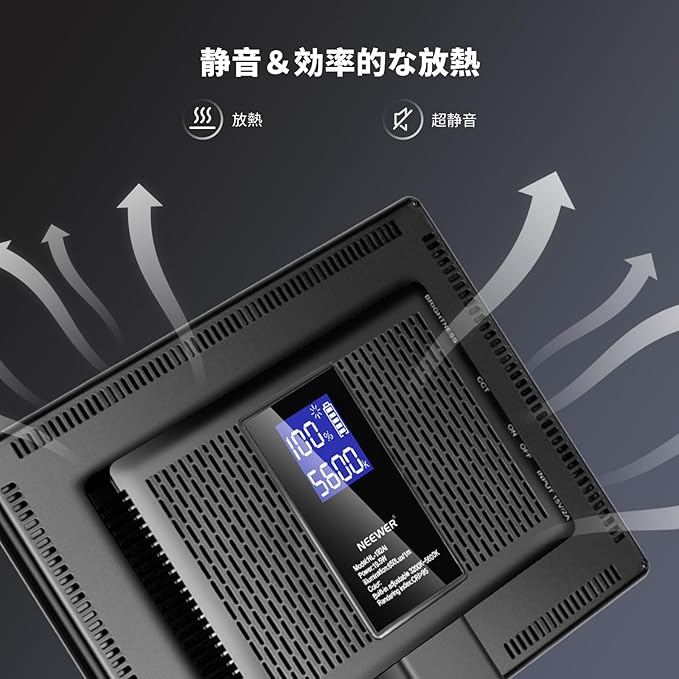 【大容量.と長時間駆動の電源システム】大容量8000mAhリチウム.を内蔵し、最大照度(100%点灯)で最大90分間の連続使用を実現。さらに、付属の急速充電器(15V/2A)でわずか約2時間でフル充電が可能です。充電器を使用すればパネルへの給電も行えるため、長時間撮影でも電力切れを心配せず、一日中安定した撮影をサポートします。ご注意: 充電中にライトを使用することはお勧めしません。.寿命に影響する可能性があります。