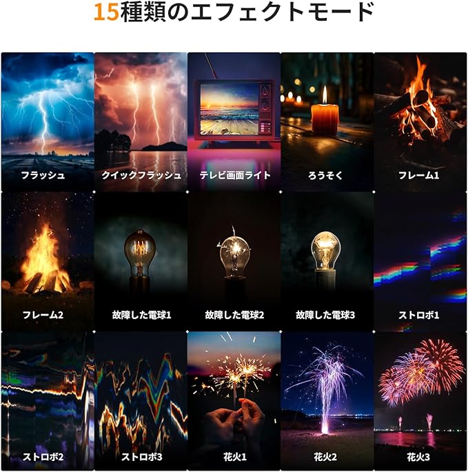 ご注意:光の量を調整する場合は、CCTモードを切り替えた後、Kボタンを押すには必要です。エフェクトを切り替えする場合は、EFFモードを切り替えた後、Kボタンを押すには必要です。