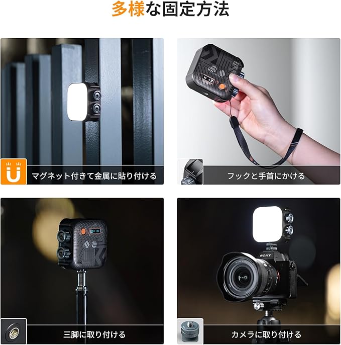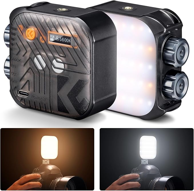 【機能性と携帯性の両立】K&F Concept ビデオライトは細かな機能性とコンパクトなサイズを一身に集めた小型撮影用ライトです。40個高品質LEDビース、調整可能な色温度と明るさ、CRI96+の高演色、15種類のエフェクトモード、使い便利なマグネットは搭載。シャッターボタン穴も設計され、予備のシャッターボタンの紛失を防止できます。ディスプレイ付き、ライトのパラメータは一目瞭然。120g超軽量で、持ち運びに便利です。