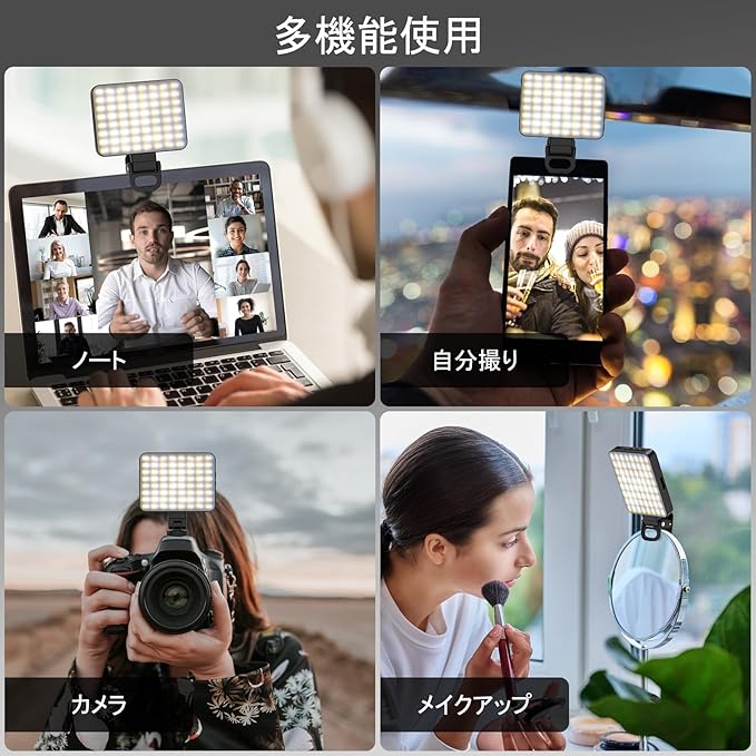 【多彩な互換性 】当社のカメラライトは、写真やビデオの品質を向上させるように設計されており、携帯電話、タブレット、PC、カメラectを含む幅広いデバイスに最適です。水平または垂直に光と角度を調整することができます。2.4cmの特大クリップ開口部は、様々なデバイスにしっかりとフィットし、内蔵の滑り止めシリコンにより、どこに行っても使用できる柔軟性があります。