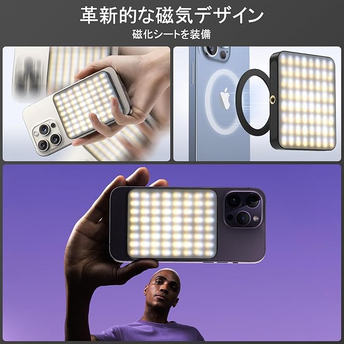 【磁気自撮りライト】-この自撮りライトは、.吸引鉄片の使用とペアになっており、携帯電話の背面にしっかりと取り付けることができ、乱暴に振り払うことはできません!一緒に使用されるクリップは、より大きく、より安定しています。