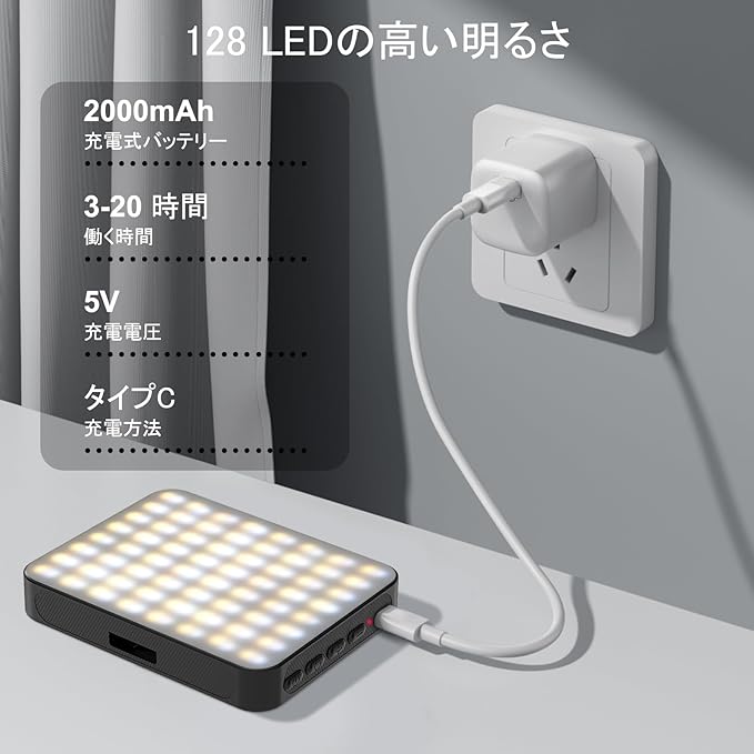 【20H長持ち電池寿命】大切な瞬間に電池寿命を気にさせないでください。2000mAhの大容量.を搭載し、1回の充電で最大20時間の連続点灯が可能です(明るさ最小時)。充電を気にする時間を減らし、美しい写真やビデオを撮る時間を増やしましょう。