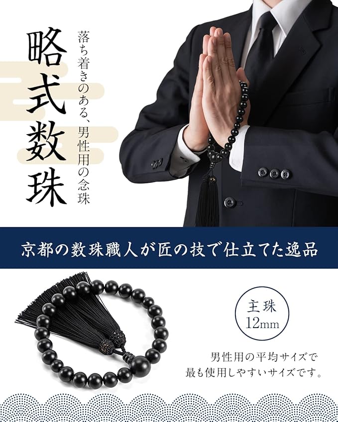 ✅全て宗派で利用可能な男性用 略式数珠です。葬祭プロ(厚生労働省認定)葬祭ディレクター1級 神崎 忍氏 推奨の数珠なので安心してご利用いただけます。