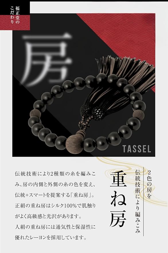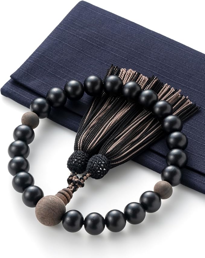 伝統と新しさの融合、重ね房シリーズ 男性用数珠 黒檀(艶消し) 重ね房(人絹)