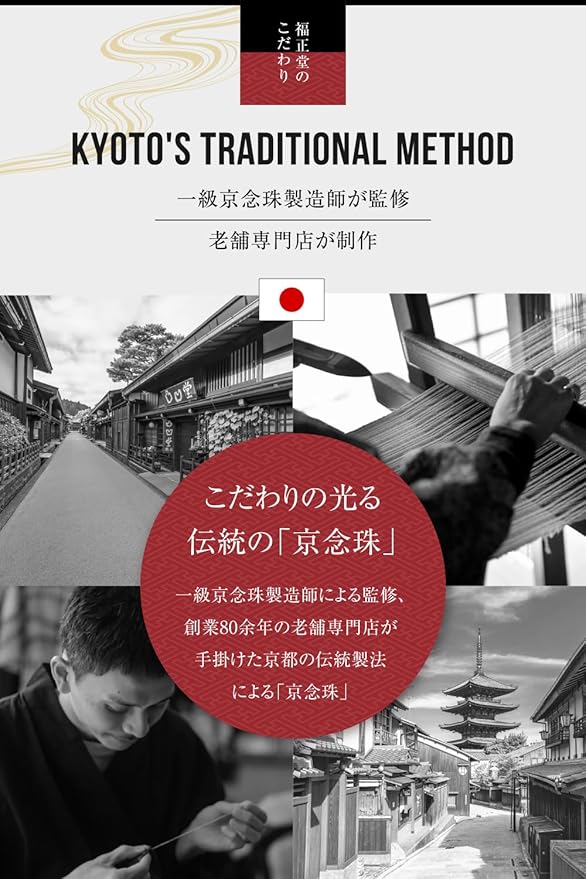 ✅【京都の老舗制作】京都の老舗が制作しており高品質の日本製 【京念珠】一級京念珠製造師の監修による京都に由来した伝統製法により京都市及びその周辺地域において生産された念珠。
