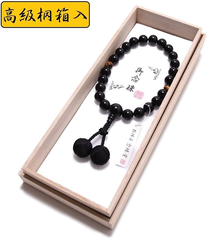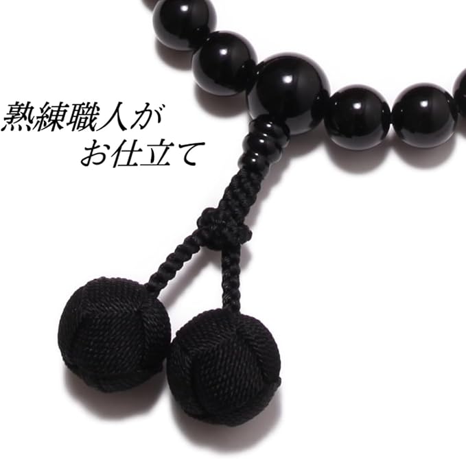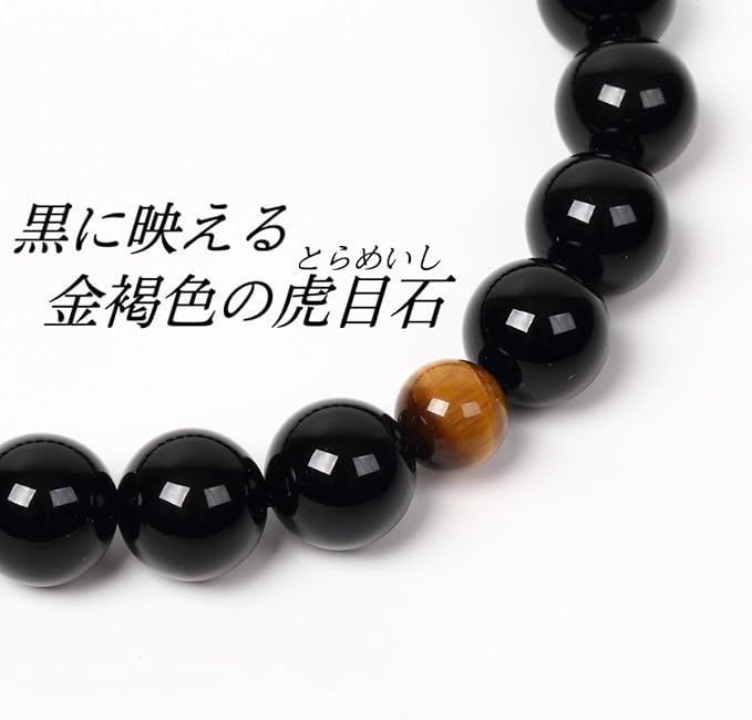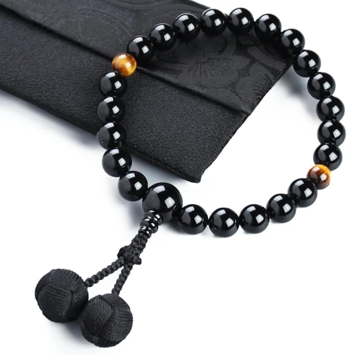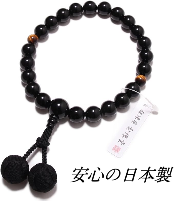 念珠堂 < 日本製 数珠 > 男性用 高級天然石 黒オニキス 22玉 虎目石 入 梵天房 【 房色 黒 】【 数珠袋 付き】 全ての宗派で使える 国産 手作り 念珠 念誦 【創業80余年 老舗数珠メーカー】 | oioioichan