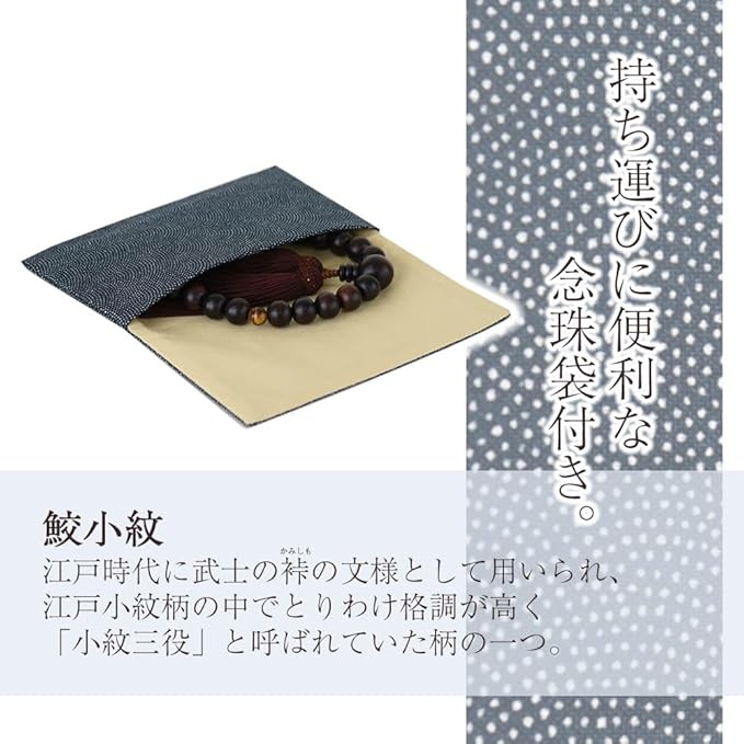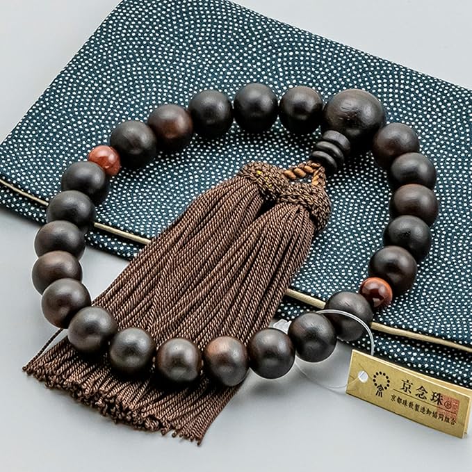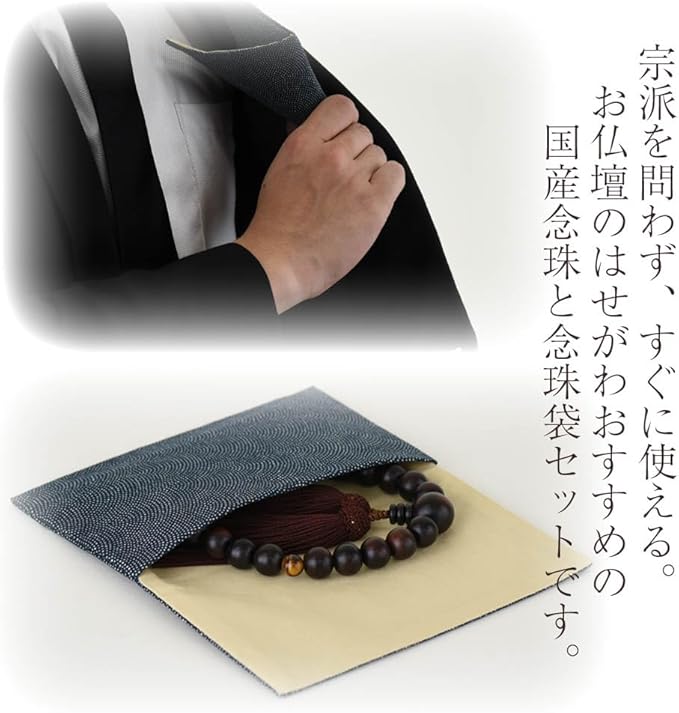 どの宗派の方でもお使いいただける略式の片手念珠(男性用) と数珠袋のセットです