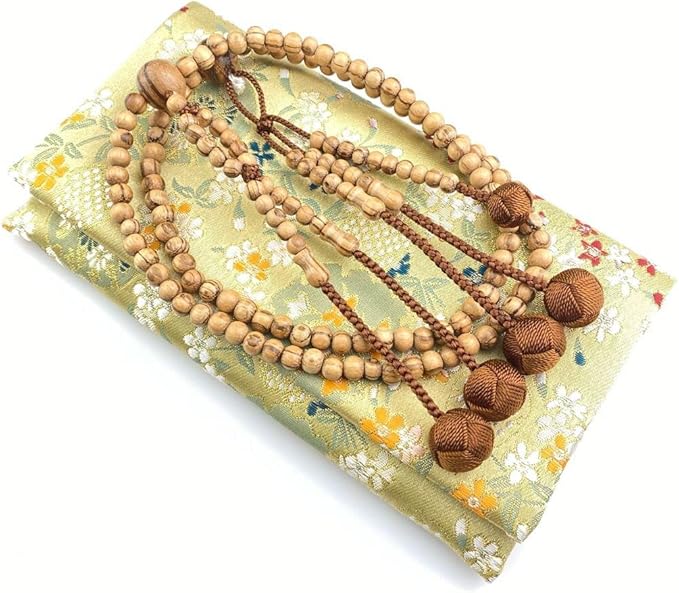 妙蓮花 お念珠 日蓮宗木製数珠 男性女性通用 尺0 虎纹木 数珠+数珠袋セット天然木珠 小田卷梵天房 本式数珠108玉 法華 天然木 葬儀 葬式 法事 法要 二輪 二連 (茶色房) | oioioichan
