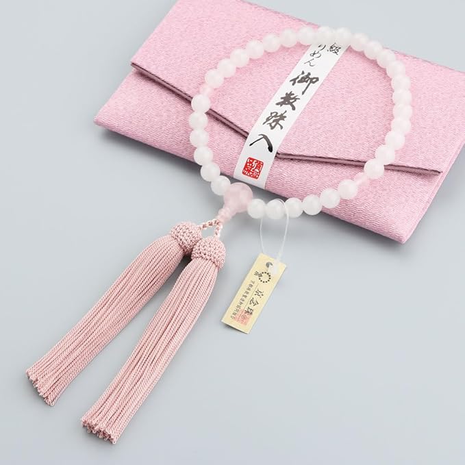 ≪特別価格≫念珠ドットコム 数珠 女性用 約8ミリ 白オニキス 3天 ローズクォーツ 正絹房【略式数珠 京念珠 京都 ホワイトオニキス 紅水晶 宗派共通 天然石 法事 葬儀 葬式 法要 8mm ピンク マイ数珠 2000200200345】【 数珠袋プレゼント!】 | oioioichan