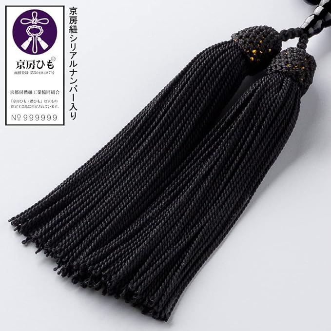 房は京都の伝統工芸である「京房ひも」の職人が製作した正絹頭付房を使用しております。京房ひも職人が作った証しであるシリアルナンバーをお付け致します。