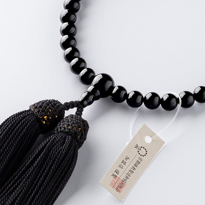 漆黒に輝く、光沢感が美しい天然石の黒オニキスを使用した女性用の念珠です。