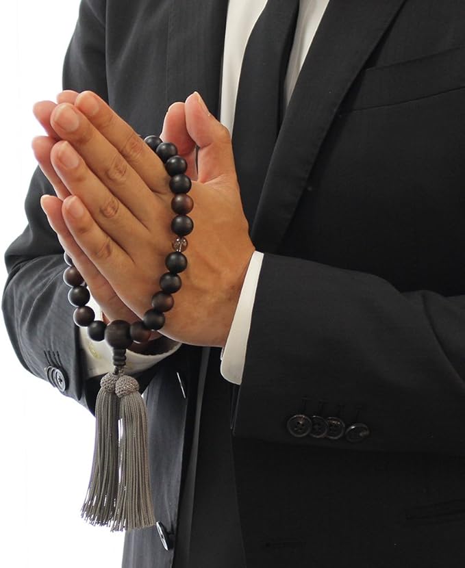 美しい木目で風合いの良い艶消しの縞黒檀と、アクセントにシックな茶水晶を使用した、男性用の略式数珠でございます。使い込みほどに手になじみ、趣深い質感になってまいります。房はもちろん正絹製。