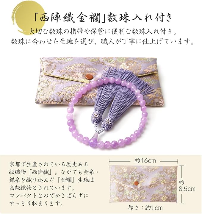 西陣織金襴数珠袋付き