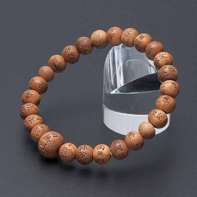 仏壇屋 滝田商店 特選腕輪念珠 木玉ブレス 南無阿弥陀仏彫入り インド白檀 8mm玉(尺二玉)◆数珠ブレスレット・数珠ブレス・腕輪数珠・ブレス数珠・香木・六字名号【滝田商店発行 証明書付】 | oioioichan