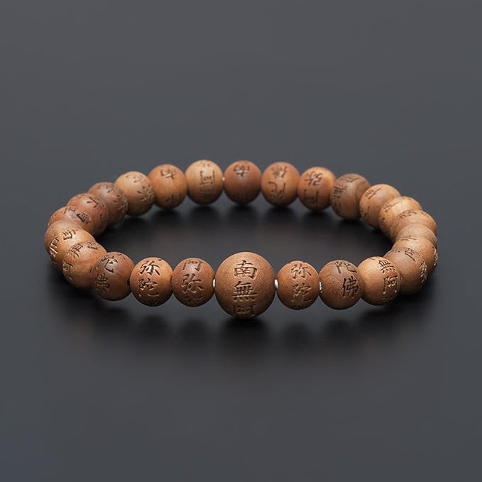 「南無阿弥陀仏」は浄土宗、浄土真宗などの大切なお念仏で、心のよりどころとされています。上質なインド白檀に、「南無阿弥陀仏」を細かく丁寧に彫り込んだ、功徳を常に身近に感じていただける念珠ブレスです。