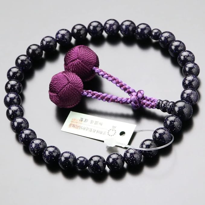 ≪特別価格≫念珠ドットコム 数珠 女性用 約8ミリ 紫金石 梵天房【略式数珠 京念珠 京都 ブルーゴールドストーン 宗派共通 法事 葬儀 小田巻梵天房 じゅず 紫色 パープル マイ数珠 2000200200796】【数珠袋プレゼント!】 | oioioichan