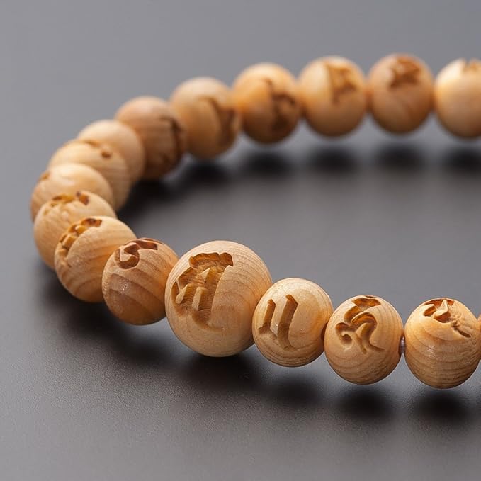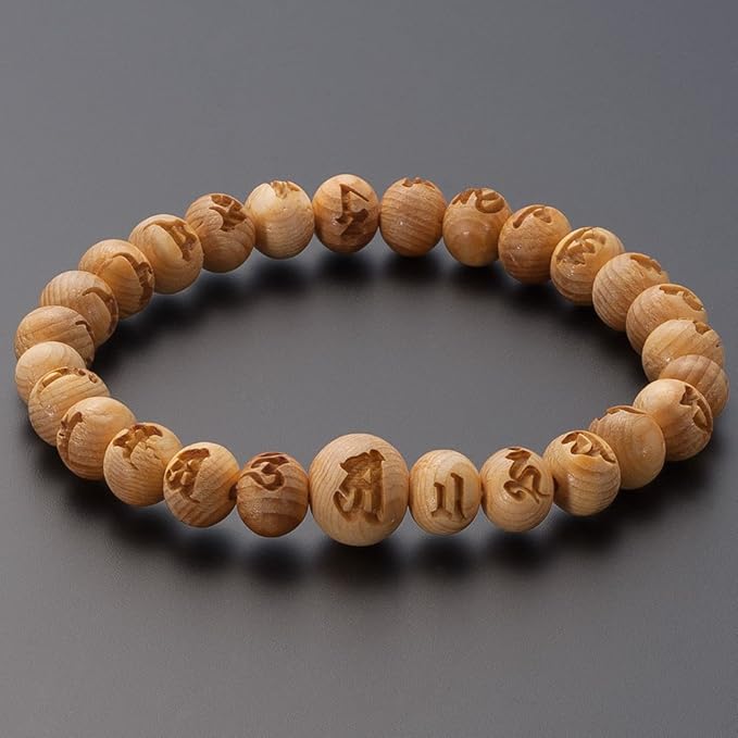 仏壇屋 滝田商店 特選 腕輪念珠 木玉ブレスレット 光明真言彫入り 木曽桧「官材(かんざい)」 8mm玉(尺二玉)◆ 最強の厄除け 梵字 数珠 ブレスレット・数珠ブレス・四国 お遍路 お守り 【滝田商店発行 証明書付】 | oioioichan