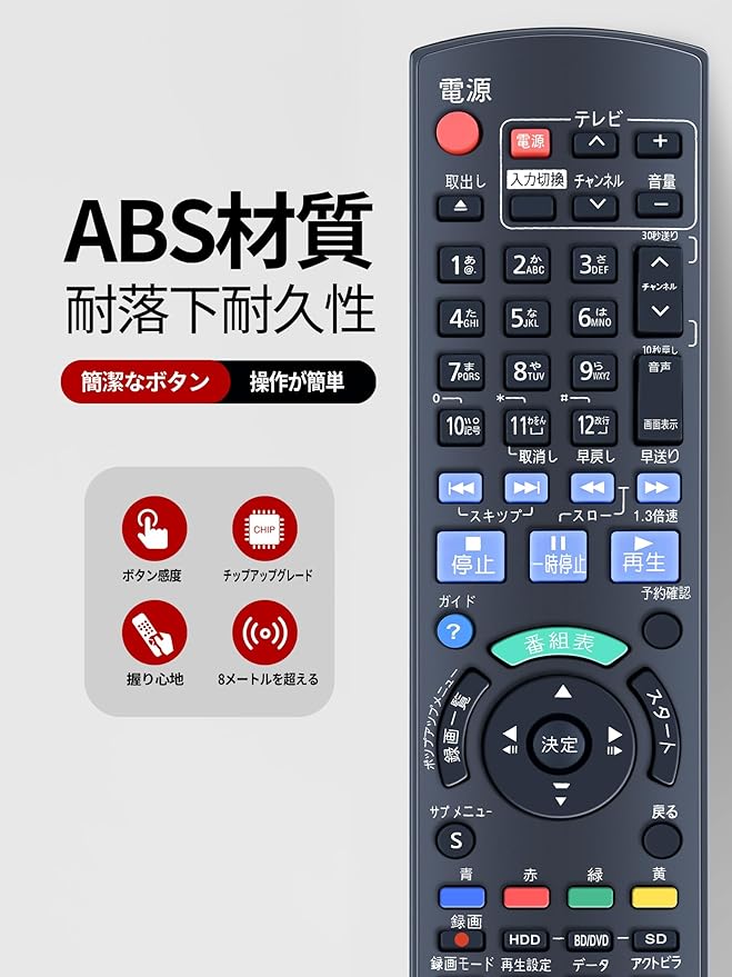 ☞【パナソニック ブルーレイBD 交換用リモコン】このパナソニックリモコンは「パナソニック ブルーレイリモコン N2QAYB000565」リモコンの交換用リモコンです。純正リモコンと同じボタンが搭載されており、全てのリモコンが使用可能ですリモコンの主な機能。
