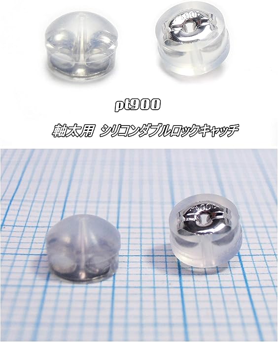 キャッチ:pt900 軸太用シリコンWロックキャッチ (地金部分にpt900の刻印) ※軸太用のため、脱着は硬い(きつい)仕様になります。