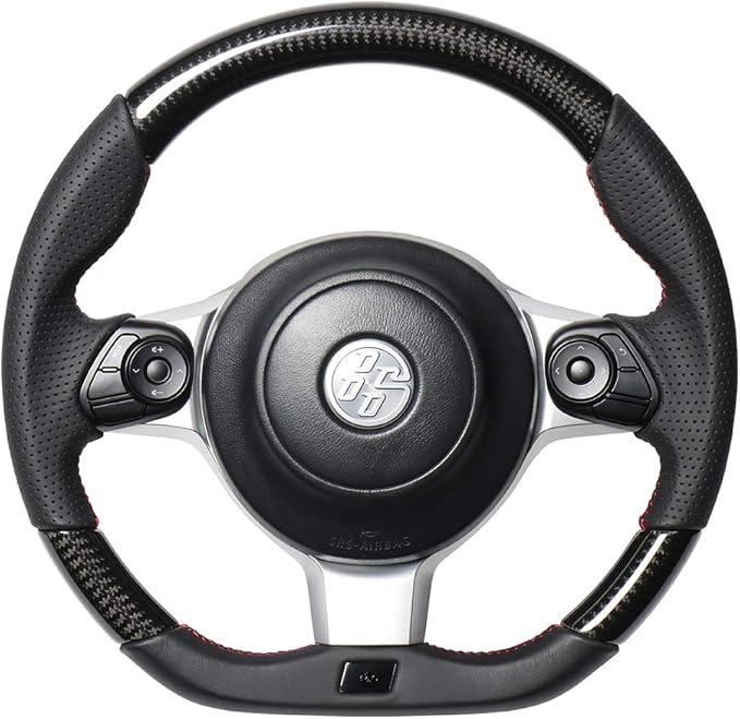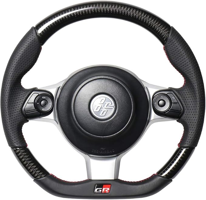 REAL(レアル)ステアリング【トヨタ86(ZN6後期)/スバルBRZ(ZC6後期)/GRMN/GR/GRスポーツ】ブラックカーボン (レッド ブラックユーロステッチ) GRM-BKC-RD