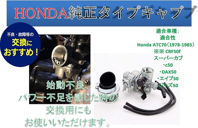 ✅ 適合性:Honda 用 ATC70(1978-1985) ※※ CRF50f や スーパーカブ・c50・DAX50・エイプ50・ジャズ50 などに取り付けする際は加工が必要な場合が御座います。他の交換用ジェット類を交換して使用する事が可能です。