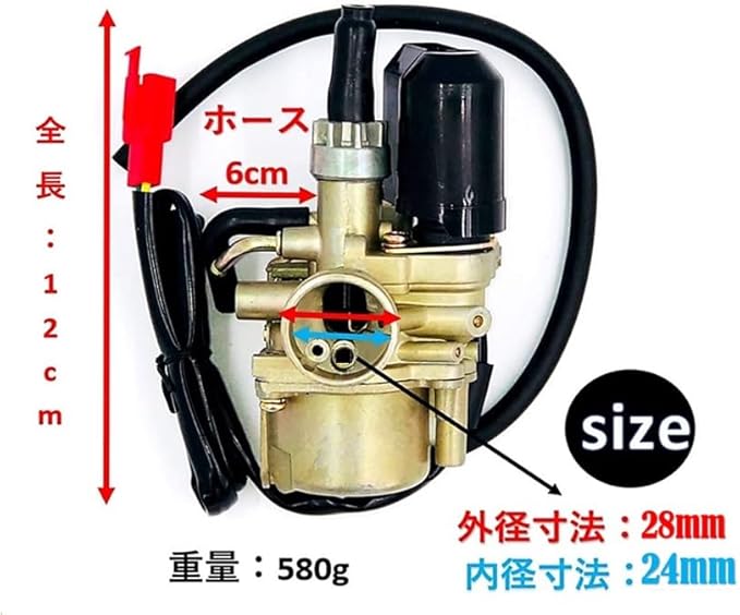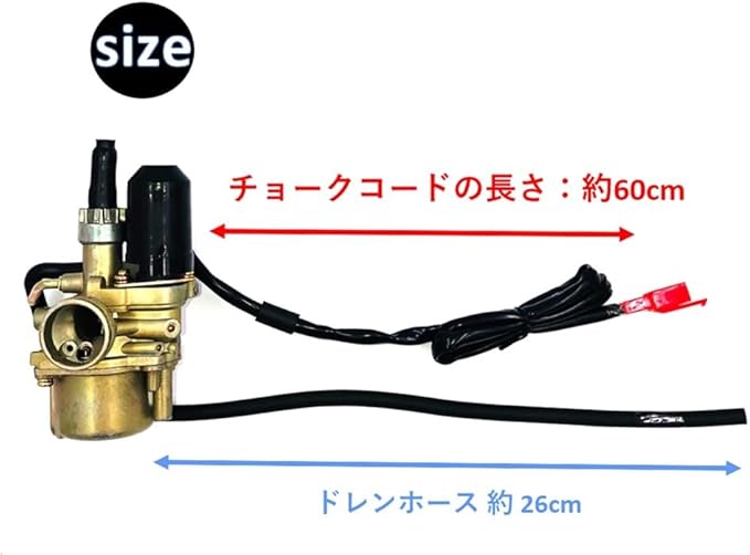 【 ホース長さ 】 ✅ドレンホース 約 26cm ✅ チョークコードの長さ:60cm チョークのカプラサイズ:4cm ✅ オートチョーク付き ✅ 本製品はは純正のエアクリーナーボックスとインテークマニホールドがそのまま使用出来ます。 スロットルワイヤーも純正をそのまま使用して頂く事が可能です。