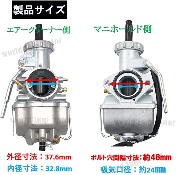✅ 【商品仕様】 ・ 口径サイズ ボルト穴間隔:4.8Cm ✅ 吸気口径:24mm/ エアフィルターマウント側 (外径) 37.6mm (内径) 32.8mm ✅ 【 全体size 】縦: 約:15.7cm 幅:約6.8cm