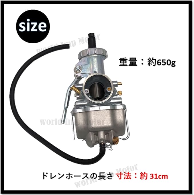 ✅【 ホース長さ 】 ・ ドレンホース 約 31cm ・ スロットルバルブ径:φ22 (166C互換/カッタウェイ#2.5) ・ ニードル:φ2.50相当品 ・ トップφ:φ36mm ・ 工場装着ジェットサイズ#:メインジェット#105 スロージェット#38