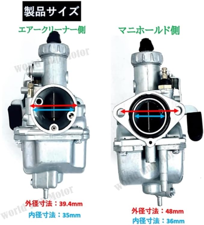 ✅ 仕様【 口径サイズ 】 ・ エアクリーナー 側 ・ 内径:約 35mm ・ 外径:約 39.4mm ・ マニホールド側 内径:約 26mm ・ メインジェット #95 ・ スロージェット #15 ・ ボルト穴間隔: 約48㎜