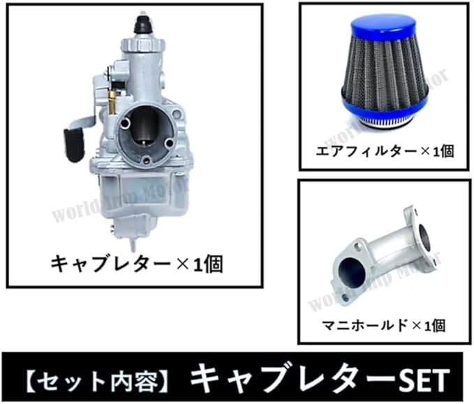 ✅ 付属品: 製品本体 1 ホースx2 エアクリーナー 1 マニホールド 1 遮熱フェノール樹脂プレート 1 エンジンガスケット 1 取り付けボルト 2 Oリングx1 合計10点