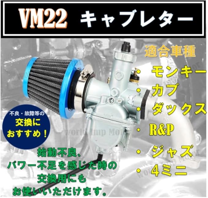 VM22 キャブレター&エアフィルターセット モンキー/ゴリラ/ダックス ホンダ 用 VM22 キャブレター set エアフィルター HONDA 用 バイク モンキー ゴリラ カブ 等 26φ 20 インテーク パイプ 社外品