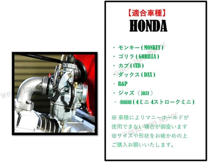 ✅【適合車種】honda用 オートバイ ・ モンキー ( MONKEY ) ・ ゴリラ ( GORILLA ) ・ カブ ( CUB ) ・ ダックス ( DAX ) ・ R&P ・ ジャズ( jazz ) ・ 4mini ( 4ミニ 4ストロークミニ ) ※ 車種によりマニーホールドが使用できない場合が御座います ※サイズや形状をお確かめの上ご購入お願いいたします。
