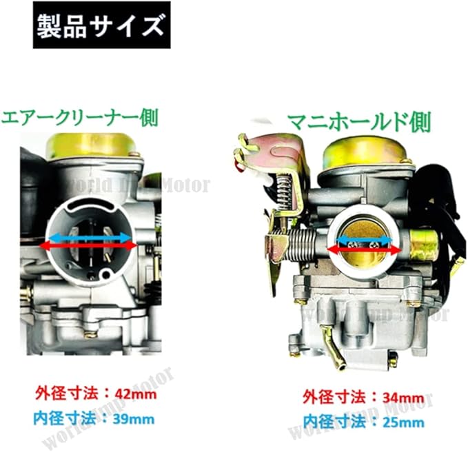 ✅ エアフィルターマウント側 (外径) 42mm (内径) 39mm
