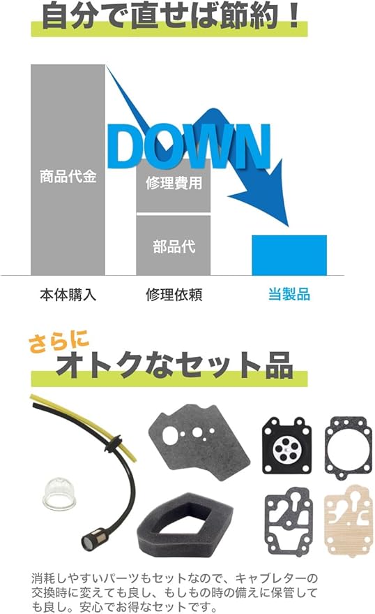 ✅ダイヤフラム・燃料ホース・プライマリーポンプ・エアークリーナエレメント・ガスケット など修理に便利なパーツがセットになっております。