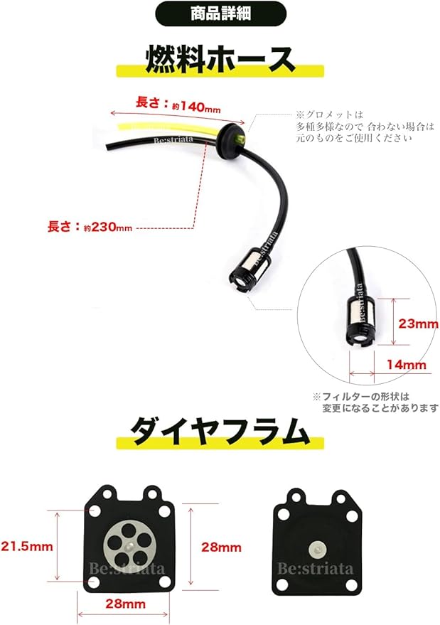 ✅燃料ホースについているグロメットは、メーカーによって様々なサイズがあります。サイズが合わない場合は、純正グロメットを使用して燃料ホースのみご利用ください。燃料ホースは、必要に応じて適切な長さにカットしてご使用ください。
