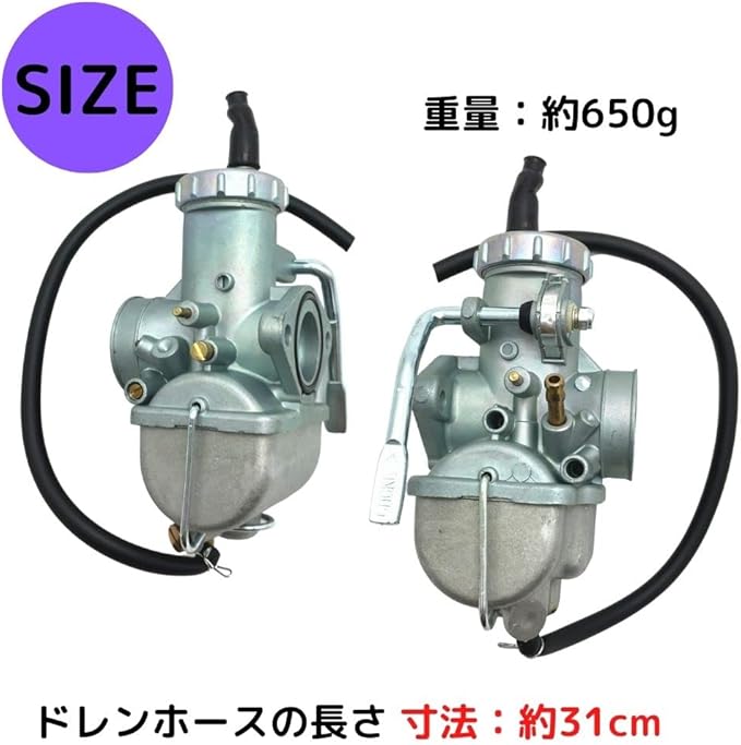 ◆【 ホース長さ 】 ・ドレンホース 約 31cm ・スロットルバルブ径:φ22 (166C互換/カッタウェイ#2.5) ・ ニードル:φ2.50相当品 ・ トップφ:φ36mm ・ 工場装着ジェットサイズ:メインジェット#105 スロージェット#38