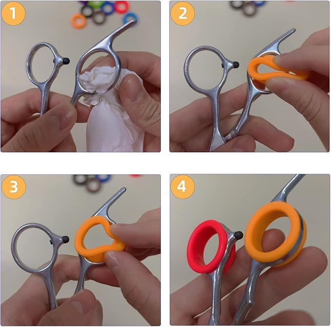 【使用】:このペットシザーカラーフィンガーリングは、ほとんどのペットシザーとグルーミングシザーに適しており、ハサミを頻繁に使用することによる指の不快感をもう心配する必要はありません。