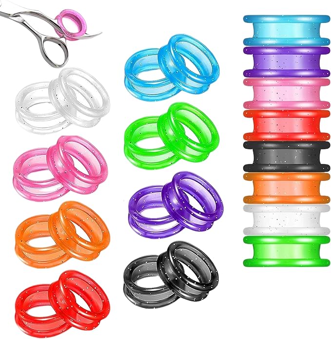 【製品仕様】パッケージには16個のシザーリングが含まれています。サイズ: 外径:25mm、内径:20mm;形状:円形、柔らかくて弾力性があり、各種のサイズのヘアカット ハサミに適しています。