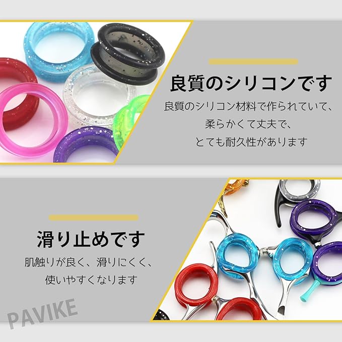 【高品質な素材】シリコンはさみリングは、柔らかく、信頼性が高く、耐久性に優れた高級素材で作られており、柔らかいシリコンがはさみのグリップにしっかりと挿入され、快適に使用できます。