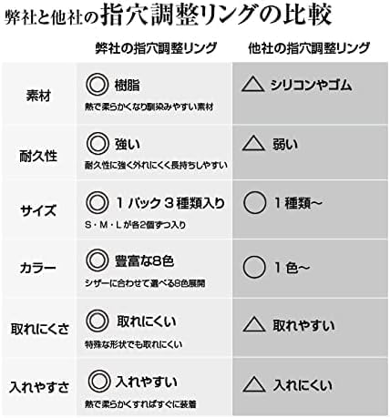 3サイズの6個入。 ■ Sサイズ:約22mm(内寸 約18mm) ■ Mサイズ:約23mm(内寸 約19mm) ■ Lサイズ: 約24mm(内寸 約20mm)