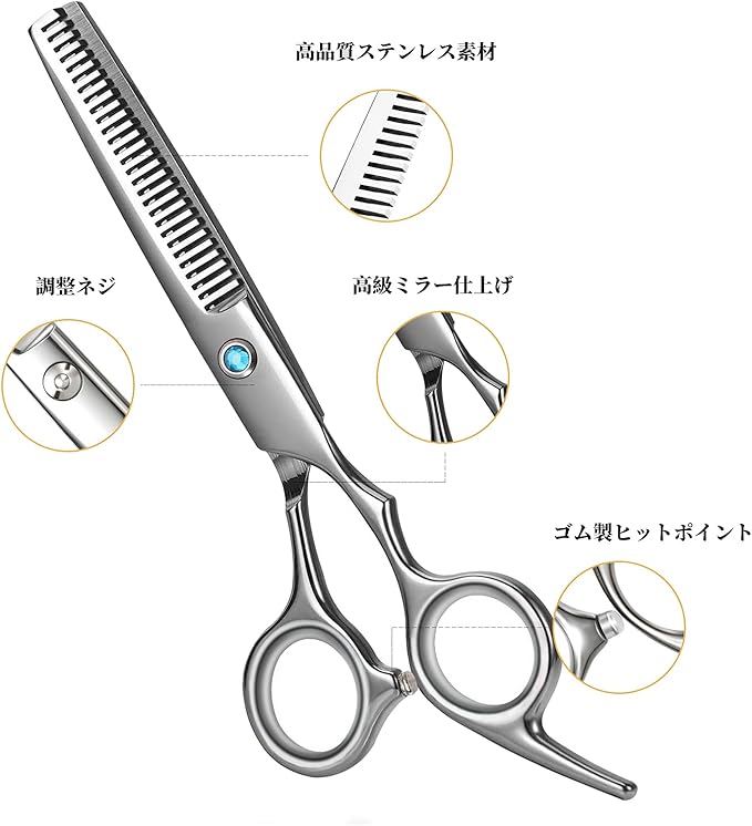 【商品詳細】6.5インチスキばさみ(すき率10-15%) 材質: 高硬度ステンレス 製 (全長17cm : 刃長7cm) 刃の駆動部分にさび止めの油が付着している場合がございます.